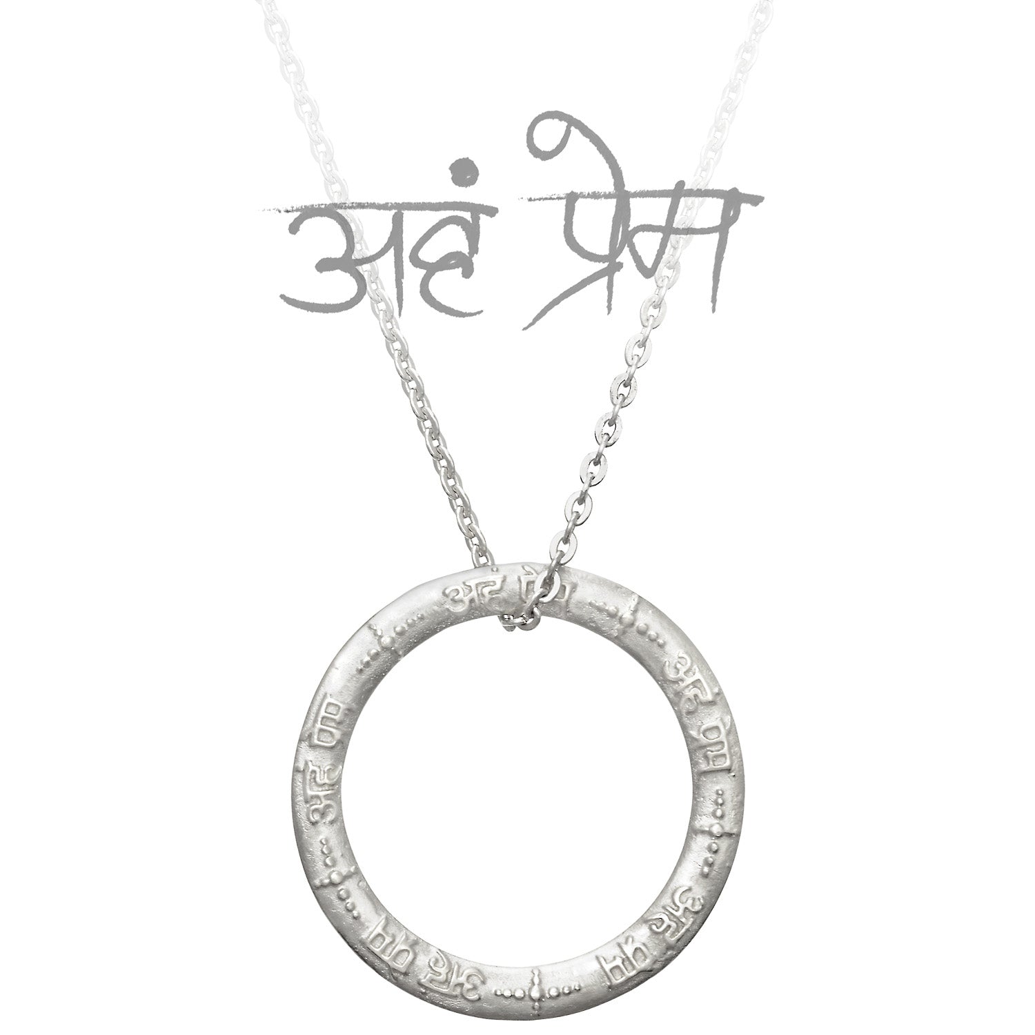 Aham Prema अहम् प्रेमः diese heiligen Silben stehen auf dem liebevoll gefertigten Mantra Anhänger. Auf diesem Schmuckstück sind nicht nur die wunderschönen, uralten Sanskritzeichen erhöht von Hand geschrieben, sondern er ist auch mit sternenförmig angeordneten kleinen Kugeln verziert, die für die Liebe, Lebendigkeit und den Kosmos stehen. Sie lassen das Aham Prema erstrahlen. Das hauchzart gewölbte Amulett ist ein wahrer Handschmeichler. Aham Prema wird dir eine klare spirituelle Ausrichtung weisen.