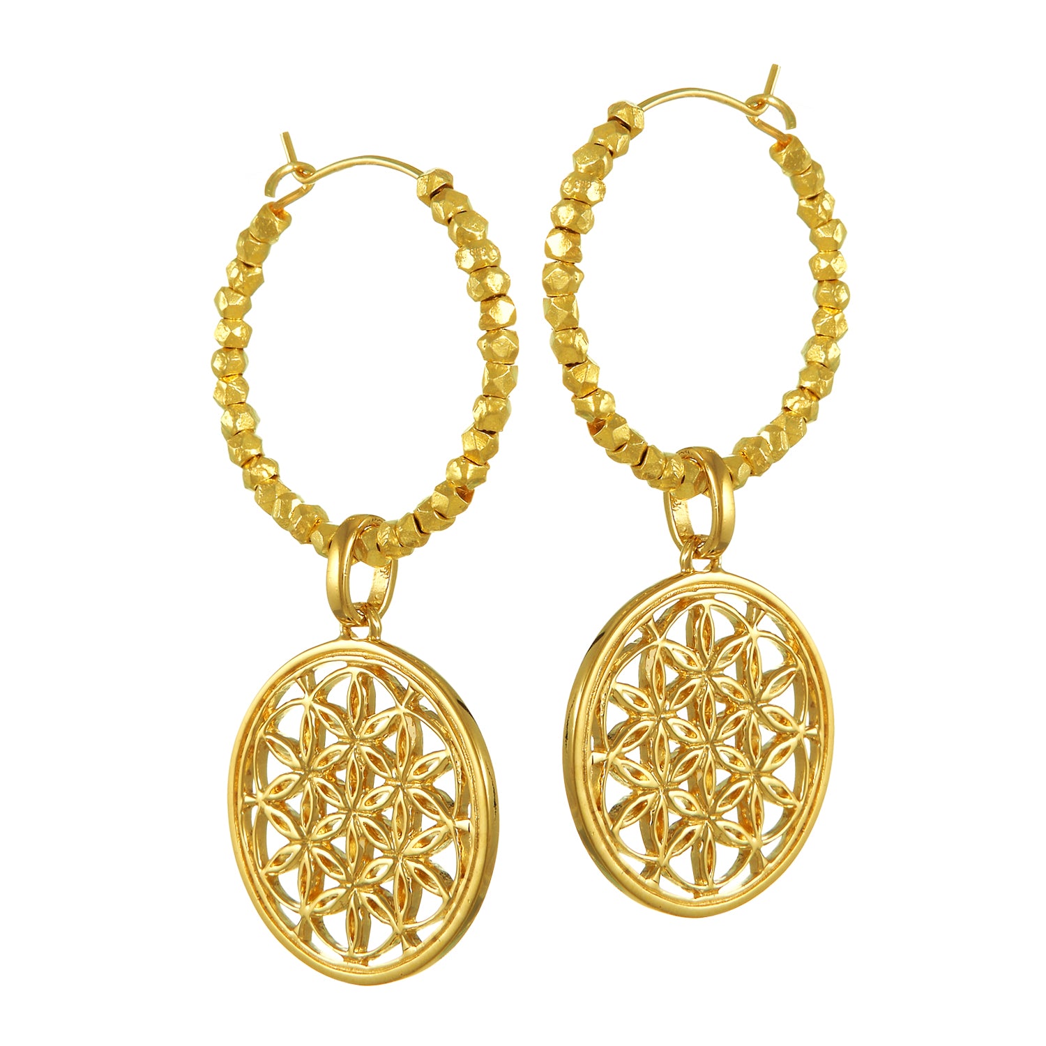 Gold-plated Flower of Life creoles with beads by ETERNAL BLISS - Spiritual Jewellery