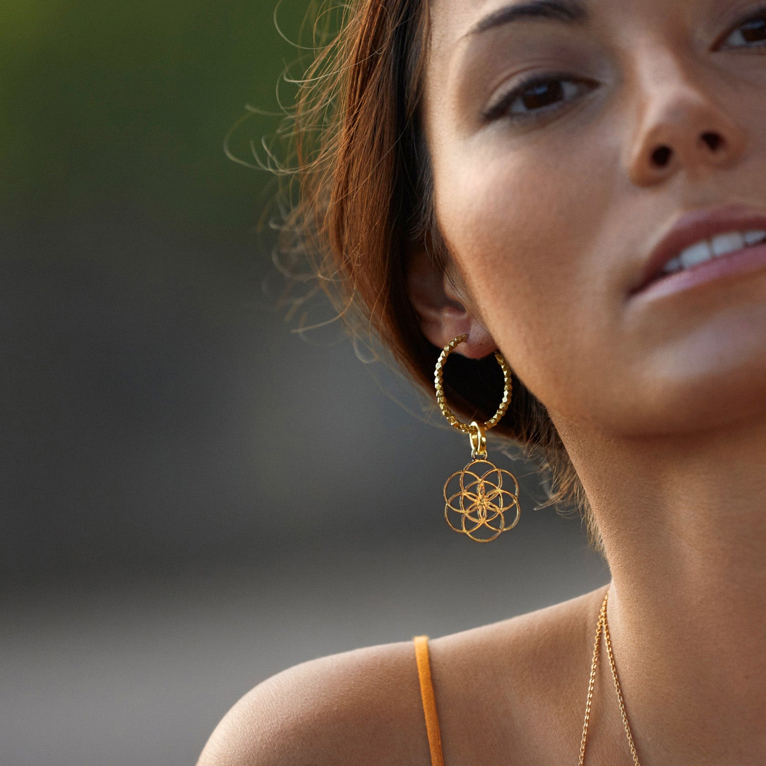 Gold-plated Seed of Life creoles with beads by Eternal Bliss - Spiritual Jewellery