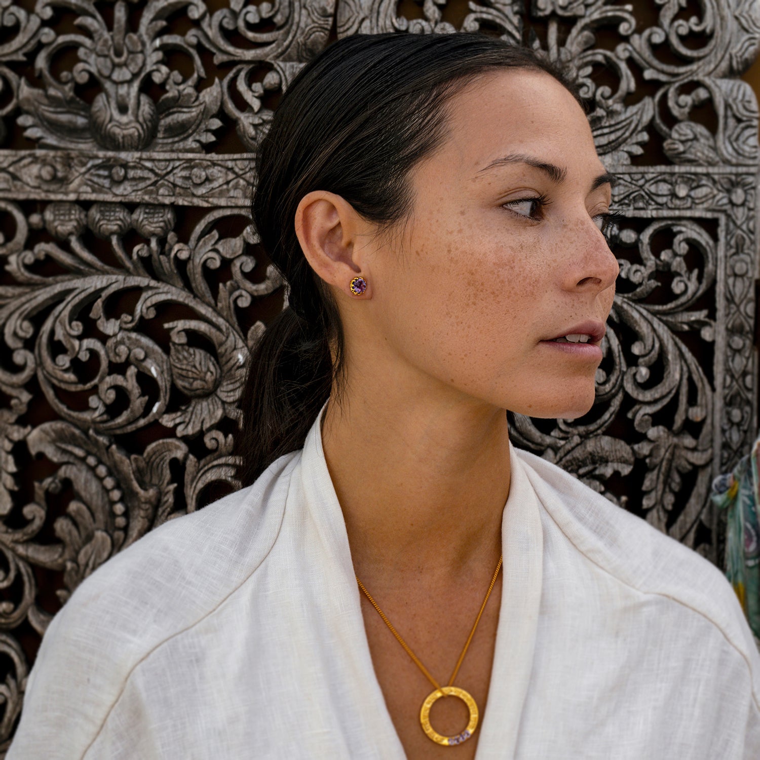 Die Amethyst Ohrstecker passen perfekt zu dem Stirn Chakra Anhänger mit Amethyst und komplementieren das Ensemble hervorragend.