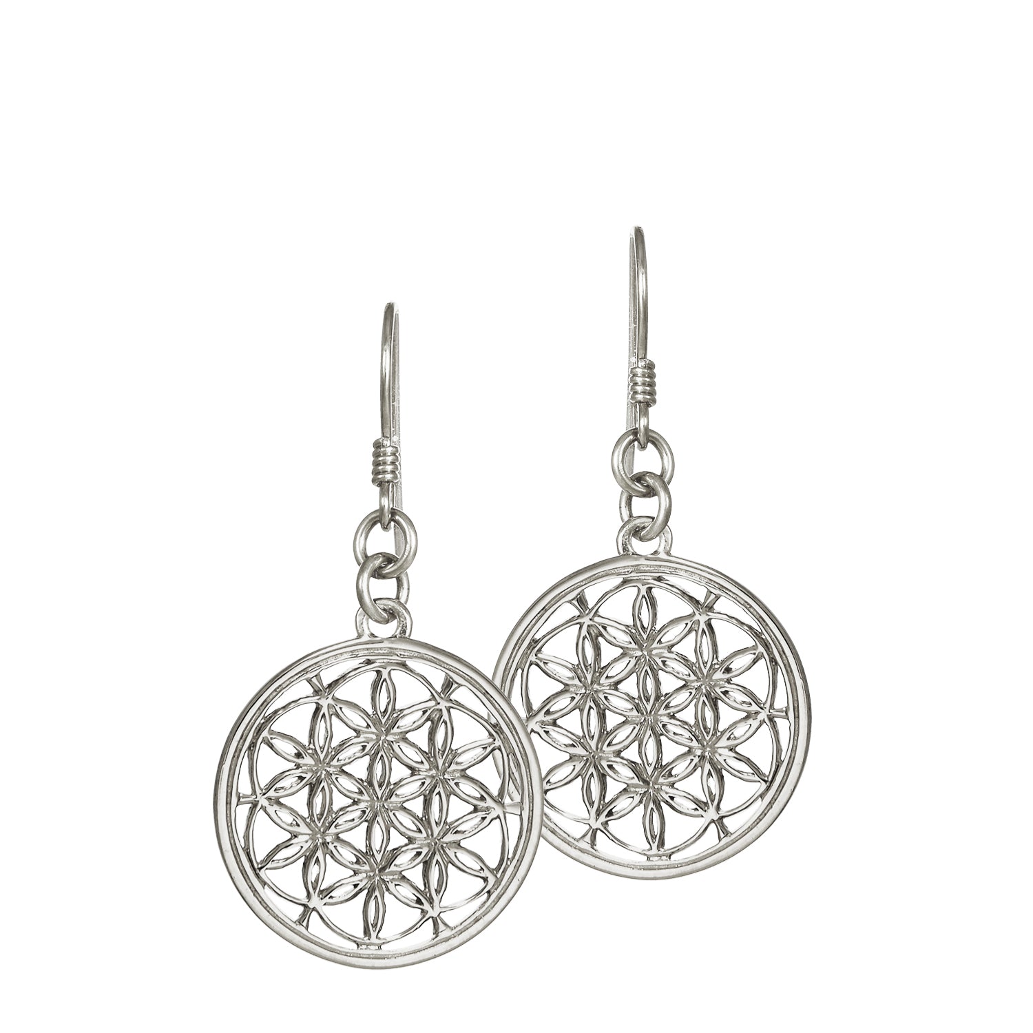 Der Blume des Lebens Anhänger bestückt mit zwei kleinen Ösen, verbunden am klassischen Fischhaken, schwingt herrlich hin und her, jede kleine Kopfbewegung wird zum Vergnügen. Diese Ohrringe symbolisieren die Schutz und Energie.